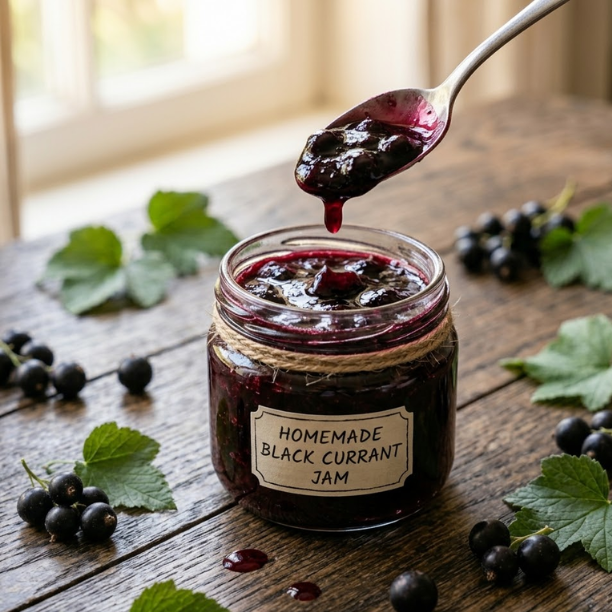 A rich, tangy, and naturally sweet homemade black currant jam made with fresh or frozen berries. Perfect for toast, desserts, and baking.