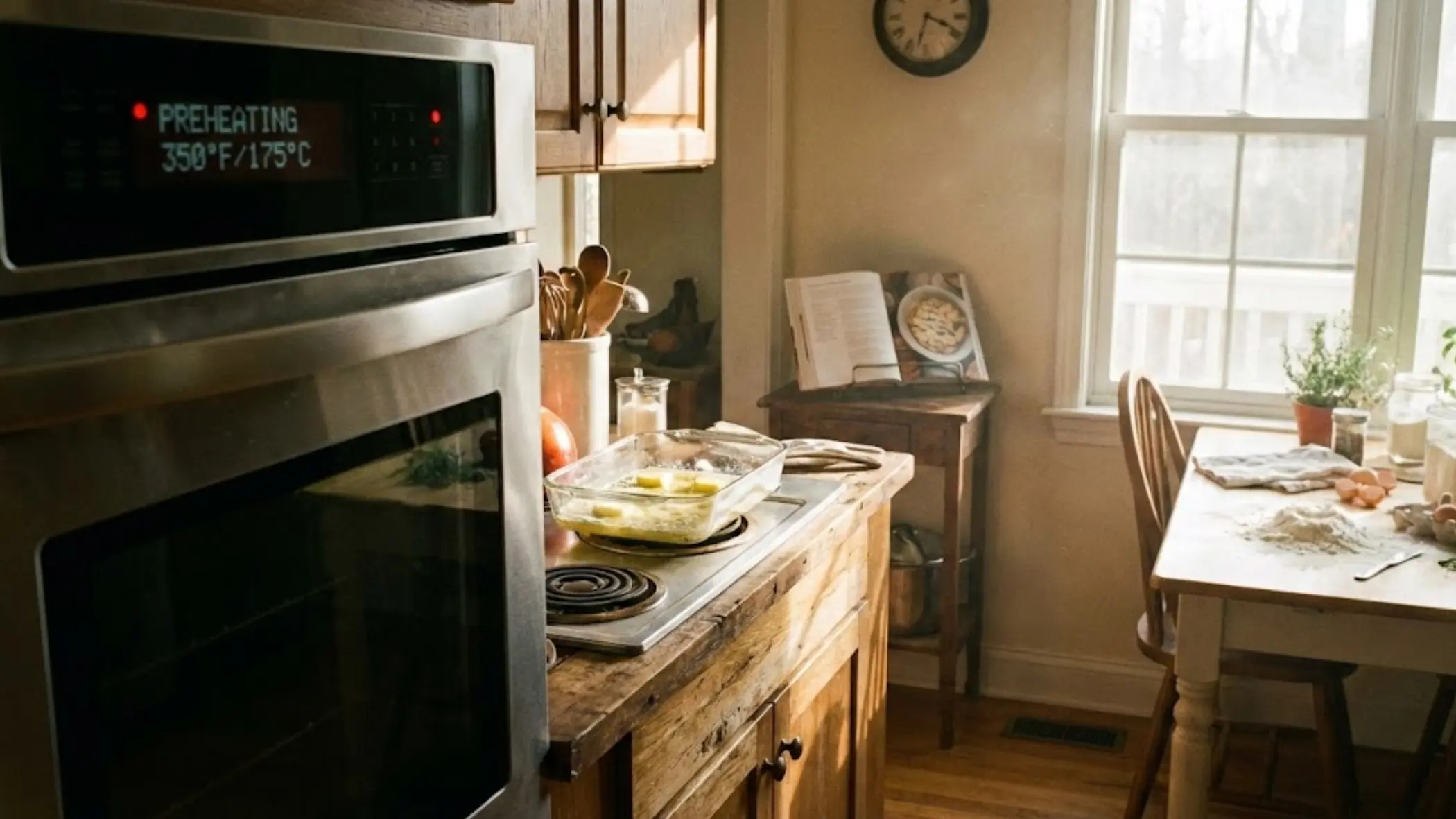 - Preheat the Oven Preheat your oven to 350°F (175°C). Place the butter in a 2-quart baking dish and set it in the oven until the butter melts completely. Carefully remove the dish and swirl the butter to coat the bottom and sides.
